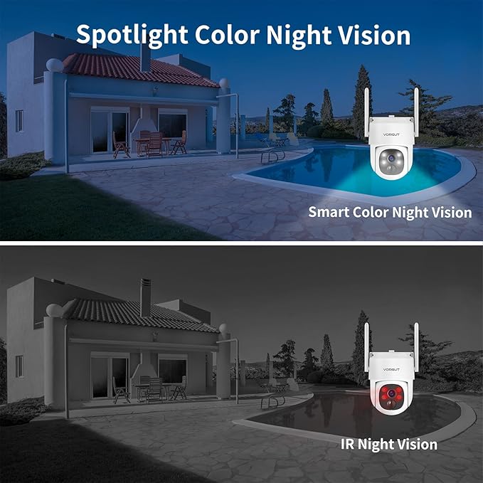 - Solar Security Camera & 100% Wire-Free: The VORGUT outdoor solar security camera features a built-in battery and efficient solar panel for continuous power, providing reliable surveillance with flexible installation and no need for a power supply. Perfect for outdoor security