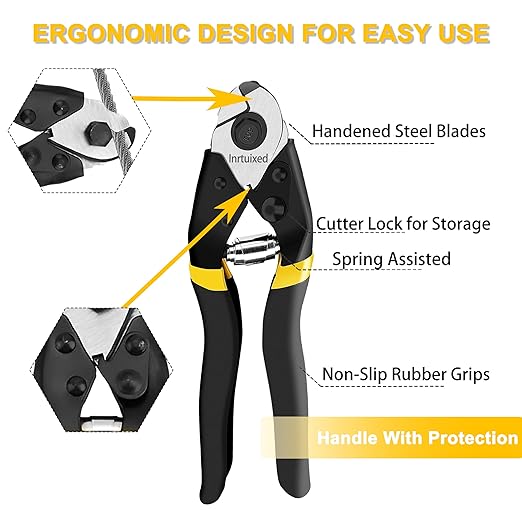 - 【1/8" Stainless Steel Cable Kit】Our 1/8" Cable Wire has a Breaking Strength of 2000 Pounds and a Working Strength of 352 Pounds, with Surface Smoother and Free of Burrs,Fine Workmanship, Strong and Durable, Use the Cutters inside Wire Cable Kit to Cut the Length of Stainless Steel Rope You Need for a Variety of Hanging and DIY Activities.