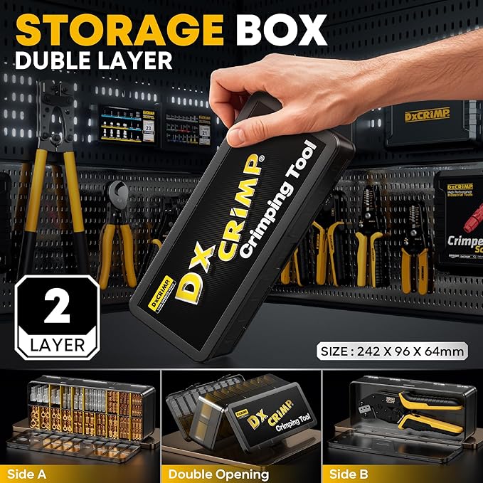 - Portable Kit: Exclusively designed double-layer portable storage box, for easy carrying and organization,This wire terminal crimping tool are perfect for quickly connecting and disconnecting batteries or rocker switches in home appliances, cars, relays, circuit breakers. It is an excellent choice for both hobbyists and professional craftsmen