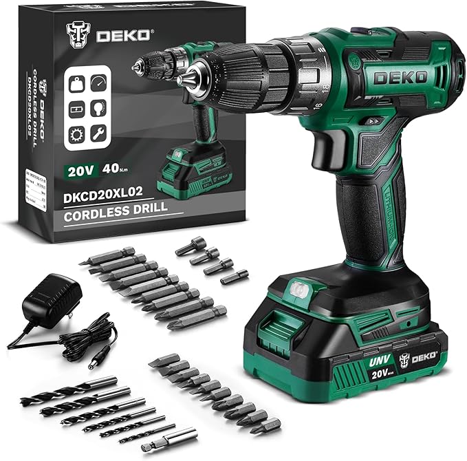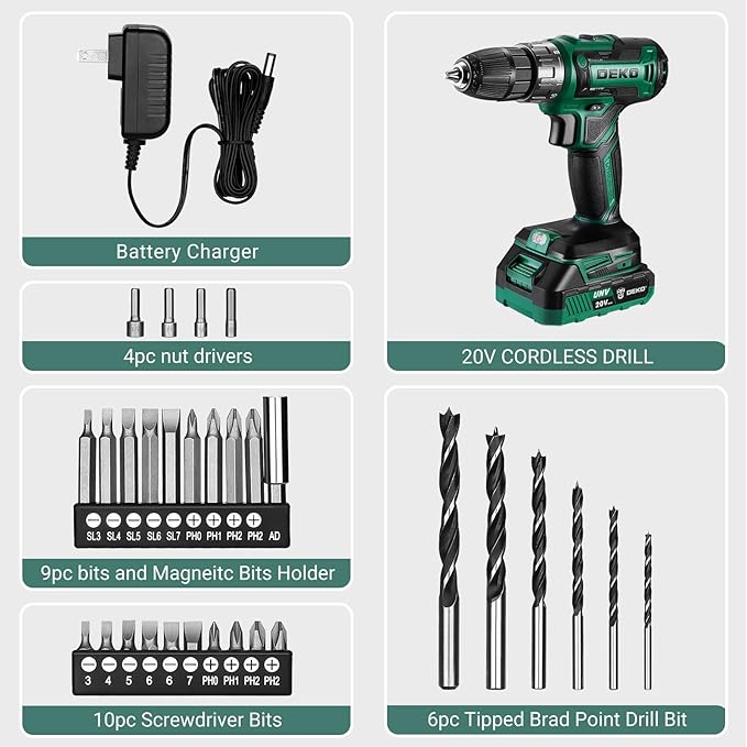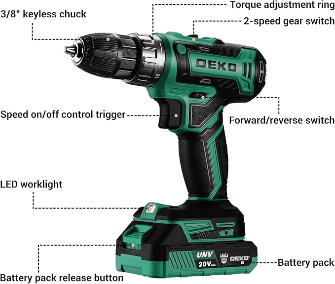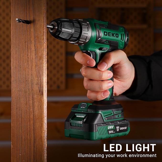 Power Drill Cordless: DEKO PRO Cordless Drill 20V Electric Power Drills Set Tool for Women with Battery and Charger 20 Volt Drills Driver Kit Green