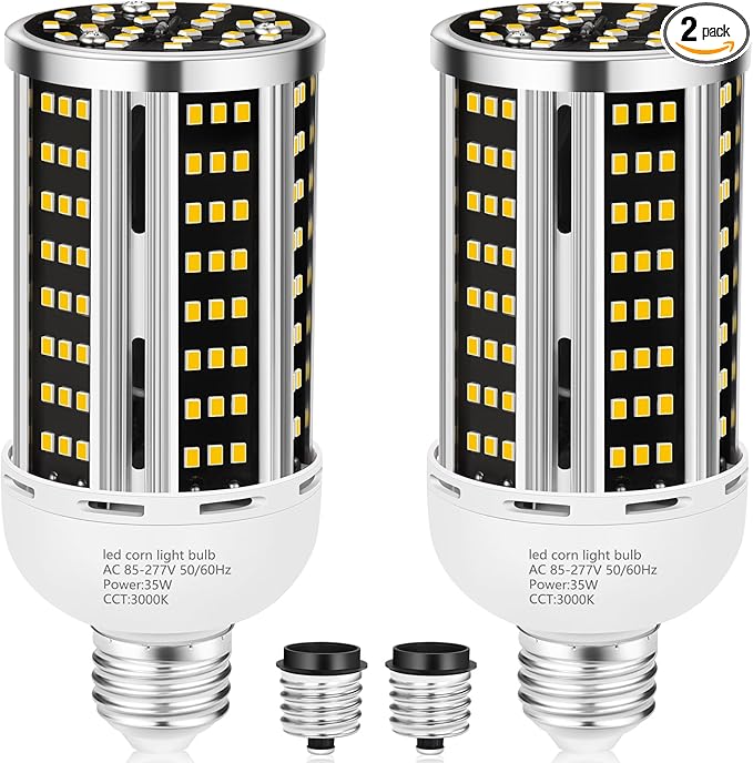- Energy-Saving:35W LED corn light bulb is suitable for AC100-277VAC, 5000 lumens brightness output. under the same brightness, 90% Energy Savings over traditional Replacement 120W-150W Metal Halide/HID/HPS and 300W incandescent bulb. Super bright with 150 lm/w high watt to lumen efficacy