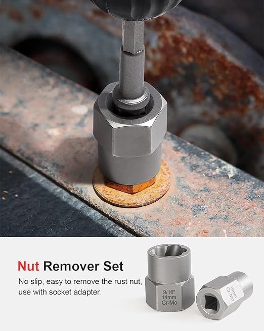 - 【Excellent Performance】The drill bit set were made by High Speed Steel(HSS), which have high hardness, perfect for drilling holes for screws. The nut remover set were made by Chromium-molybdenum steel(CR-MO), which is high temperature and high pressure resistance, perfect for remove nuts