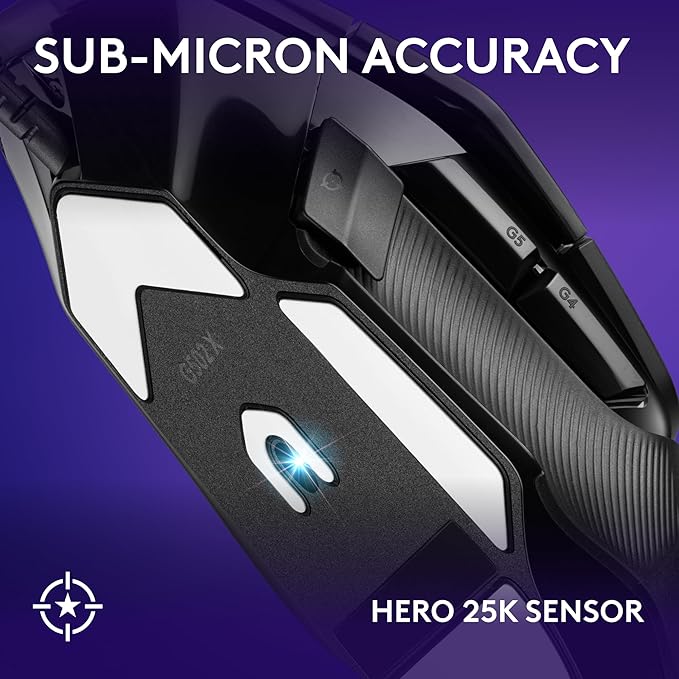 - G502 X includes sub-micron HERO 25K sensor to track movement with zero smoothing, filtering, or acceleration with pinpoint accuracy for high performance precision and control