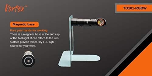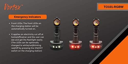 Vortex TO101-RGBW 2 in 1 Working and Emergency Rechargeable RGB LED Charging Dock 7/24 Right Angle Crank Magnetic Base Mini-USB Charging Up to 1200 Lumen Handheld Home Flashlight