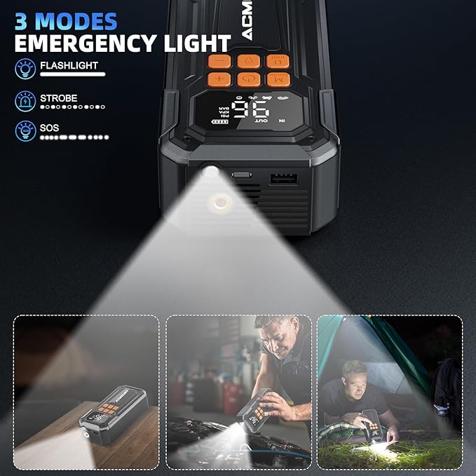 - 4+ CUSTOM MODES: Acmount car tire inflator provide 5 inflation modes (car, motorcycle, bike and basketball inflation mode) and custom mode. In custom mode, you can set the inflatable air pressure value (3-160PSI) and units (PSI, BAR, KPA). We also offer 4 types of air nozzles which can inflate balloons, football, swimming rings and other pool toys.