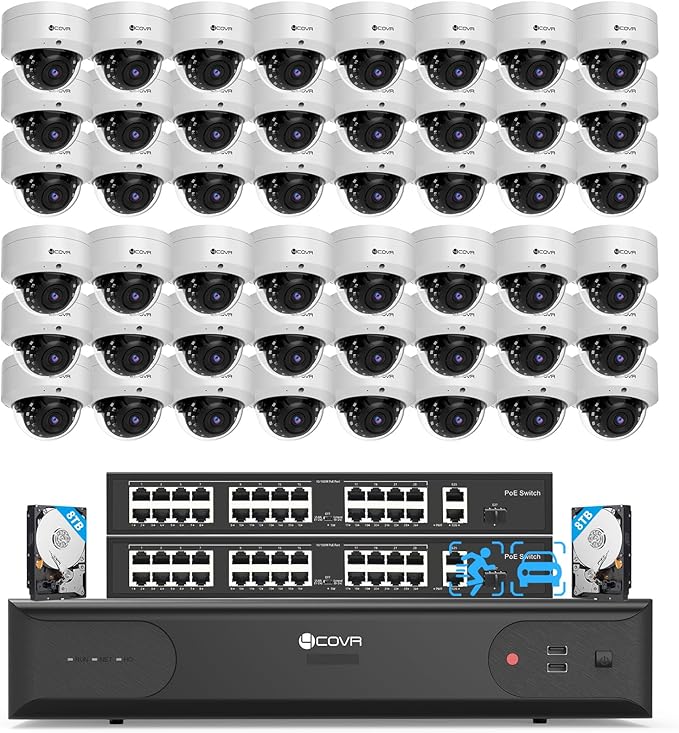 4COVR PoE 64 Channel Security Camera System, Human Vehicle Detection, 48Pcs IK10 Vandal-Proof 5MP Commercial Dome IP Camera IP67 with Mic, 8MP NVR 16TB HDD, 24/7 Business Surveillance, LY54AX5M6448