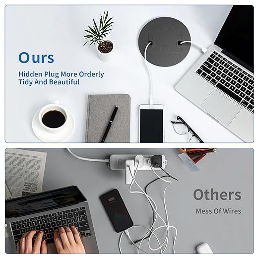 - Innovative appearance: The surface of the socket box can be embedded with the same material as your countertop, making the socket box countertop integrated and highly aesthetically pleasing. Unique hidden outlet, without unsightly socket protrusions during use, is both convenient and aesthetically pleasing.