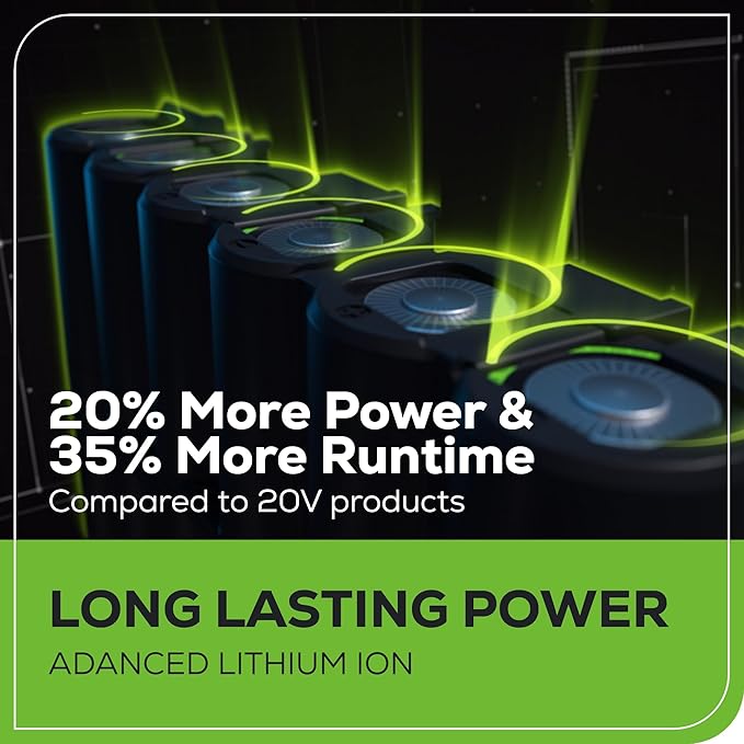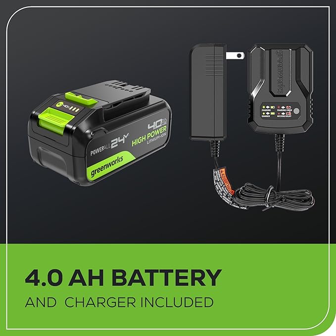 - Greenworks 24V Lithium-ion Battery - Provides 20% more power and 35% more run-time and delivers fade-free power with no memory loss after charging.