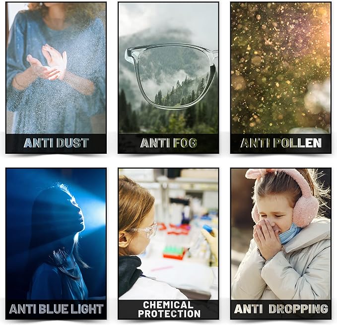 - ANTI-FOG LENS: With Anti-fog Coating Technology, The Transparent Lens of the Protective PPE Safety Glasses will not Fog, and you can Maintain a Clear Vision Environment.