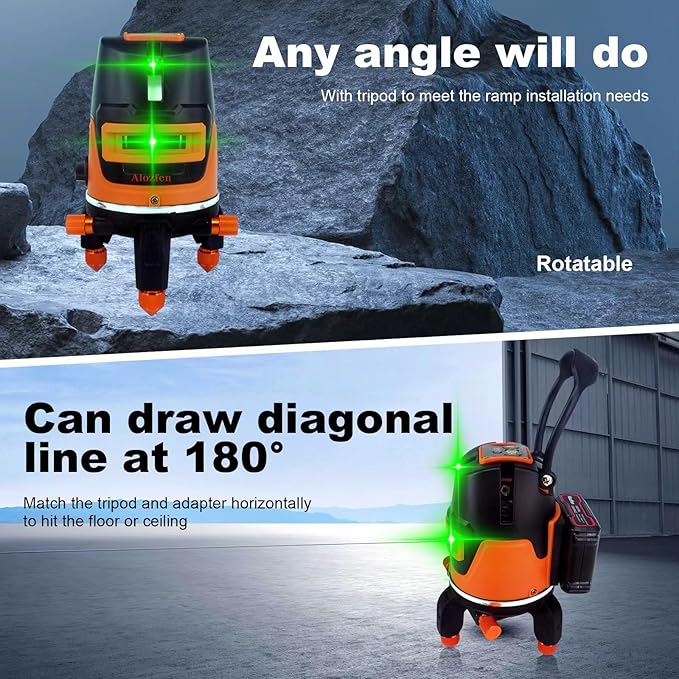 - 【8000mAh Battery x2】This rechargeable 360 laser level is equipped with a large-capacity battery, which can working up to 24h. IP54 waterproof and dust proof.