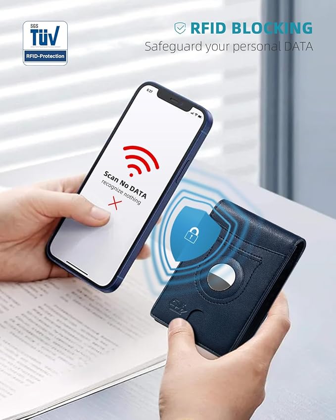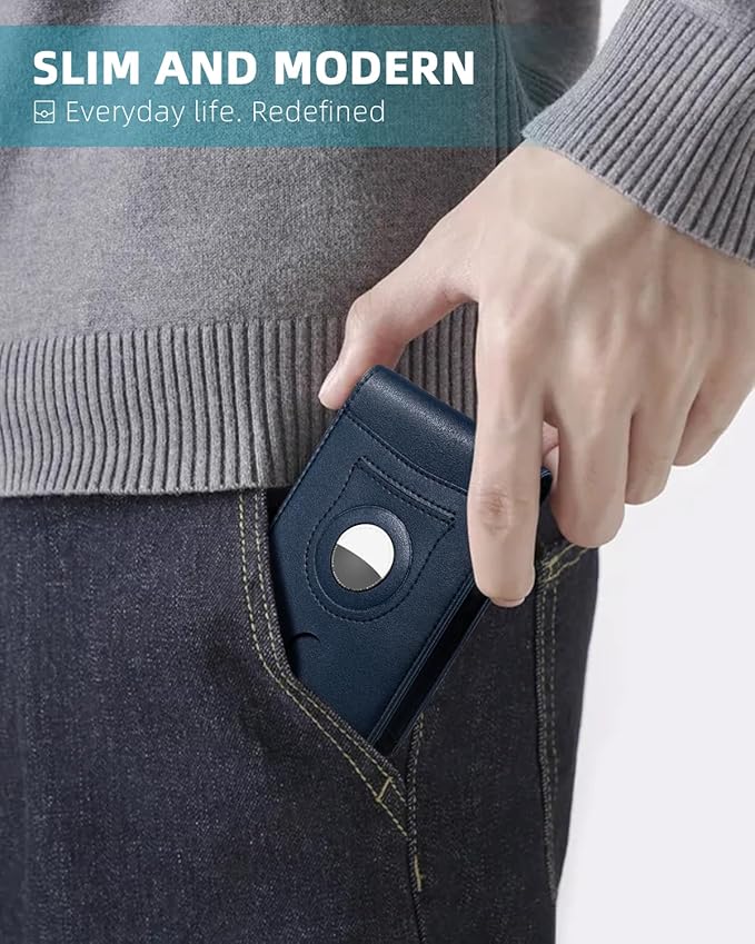 • ๐‹๐Ž๐–๐„๐‘ ๐๐‘๐Ž๐…๐ˆ๐‹๐„ ๐‹๐„๐•๐„๐‹-๐”๐ ๐‚๐€๐๐€๐‚๐ˆ๐“๐˜ - Meet our latest slim airtag wallet with upgraded money clip! Sized 4" x 3.5" with money clip, this slim wallet for men is equipped with refined hinged money clip, which takes up less room than the wide money clip, reducing the bulk. It features ๐Ÿญ0 ๐—ฐ๐—ฎ๐—ฟ๐—ฑ ๐˜€๐—น๐—ผ๐˜๐˜€ with quick access slot on the front, 10 on the sleeves and 1 built-in air tag pocket on the back
