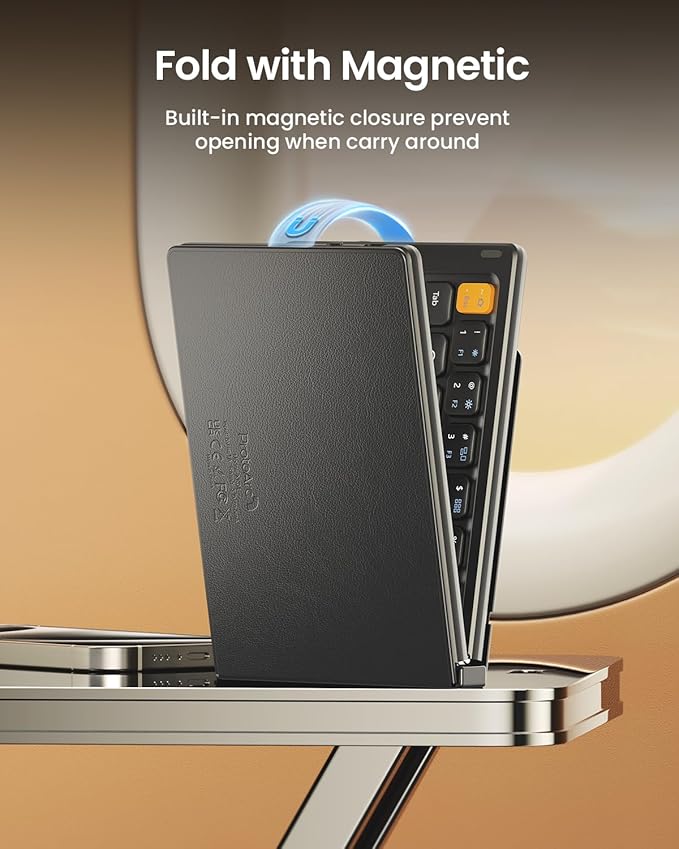 - 【Folding Mini Keyboard】 Only a 7.8-ounce palm-sized foldup keyboard is designed in two-fold and compact enough to save desk space or take it on the go. Covers with PU Leather surface, good texture and protection, a perfect companion for business travelers. Maximum convenience for you with minimum weight and size