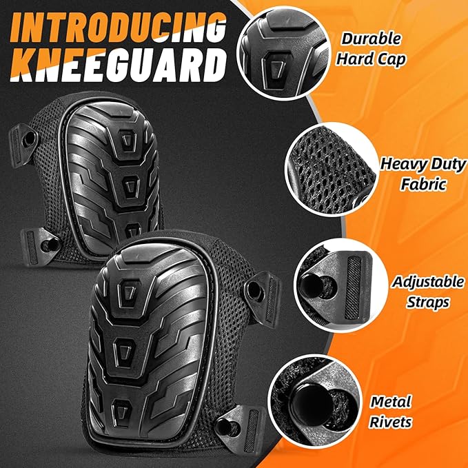 - ๐ใProfessional Knee PadsใTo protect your knees. โ Shell is made of non-slip TPE, which is hard and durable enough to prevent scratches or cuts during work. โก Ventilate Heavy Duty Fabric-prevent sweat accumulation and keep knees dry and cool. โข Adjustable elastic belt-easy to put on and take off, suitable for all people. โฃ Hard rivets - support the knees and help release the force.