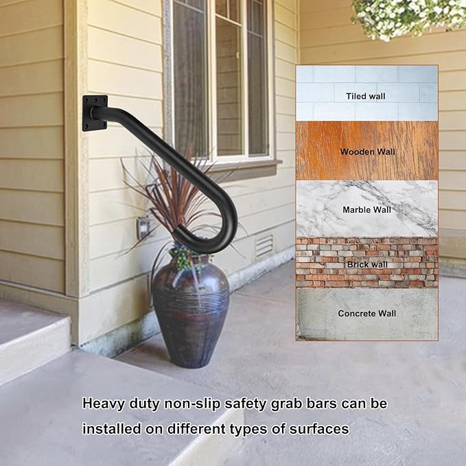 - 【DURABLE & STURDY】The wall mount handrail is made of metal with black powder coating. Stable and durable, which is rustproof and anti-corrosion.
