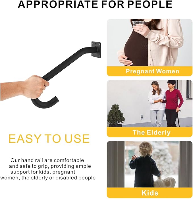 - 【Easy to install】As a safe step assist/safety grab bar,you can adjust the height of the hand rails to your needs and mounted on the concrete walls or solid wood wall studs.One person can easily complete the work. With our wall-mounted metal handrails, you can quickly increase the safety of your space!