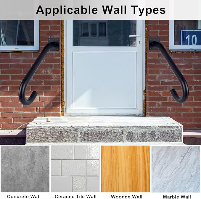- 【Wide Application】Handrail for Outdoor Steps and Stair Railing Indoor are suitable for stairs from 1 to 3 steps. Whether it is installed in the porch, balcony, garden or garage, it can help everyone pass through the steps easily, giving you and your family more peace of mind, and the sturdy handrail ensures durability and long-lasting use.
