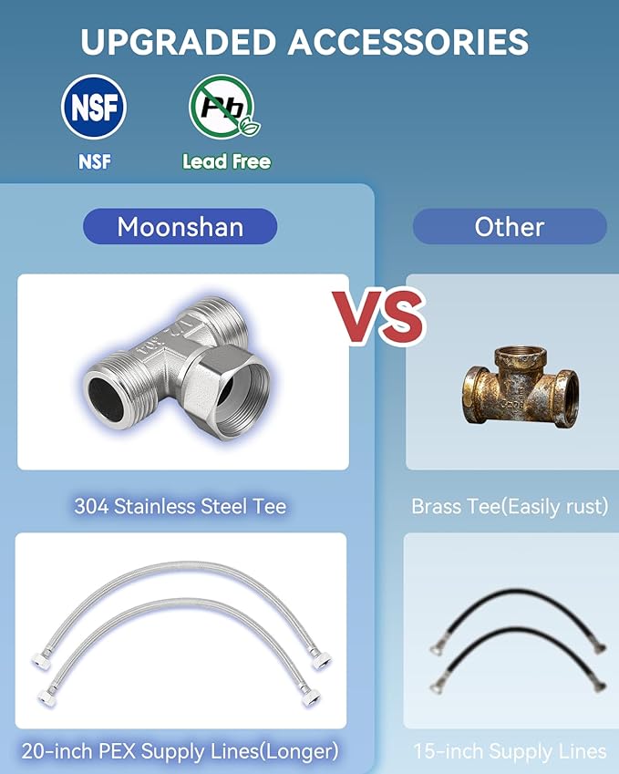 - 【Upgraded Accessories - One Wrench Installation】We have upgraded the hot water recirculating pump kit with stainless steel tee, which is not easy to rust and durable. And provide 20-inch long supply lines, no need to worry about the supply lines are too short. With lead-free grade copper pump body and connectors, it is easy to install and does not require special tools or complicated procedures. Even non-professionals can handle the installation, saving time and labor costs. Pump is designed for indoor installation, no plumber required.