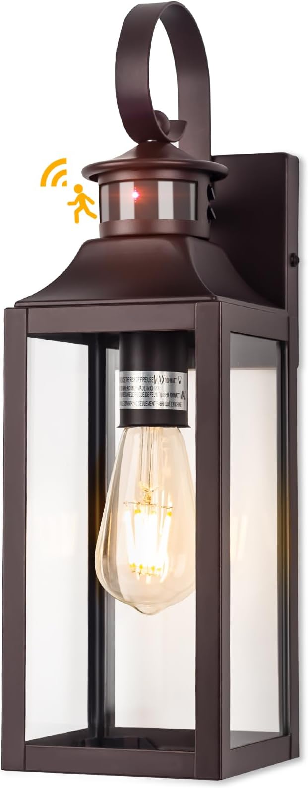 - 【Waterproof & Weather Resistance】The dusk to dawn motion sensor wall light is crafted from premium metal, and will not get rusty or corrosive for years of use. It boasts excellent performance in weather resistance, with an IP65 waterproof rating, the outside porch wall mounted light can withstand all kinds of bad weather conditions. Even under rain, snow, or ultra-high or low temperatures, you can trust the oil rubbed bronze outdoor wall lantern to keep new