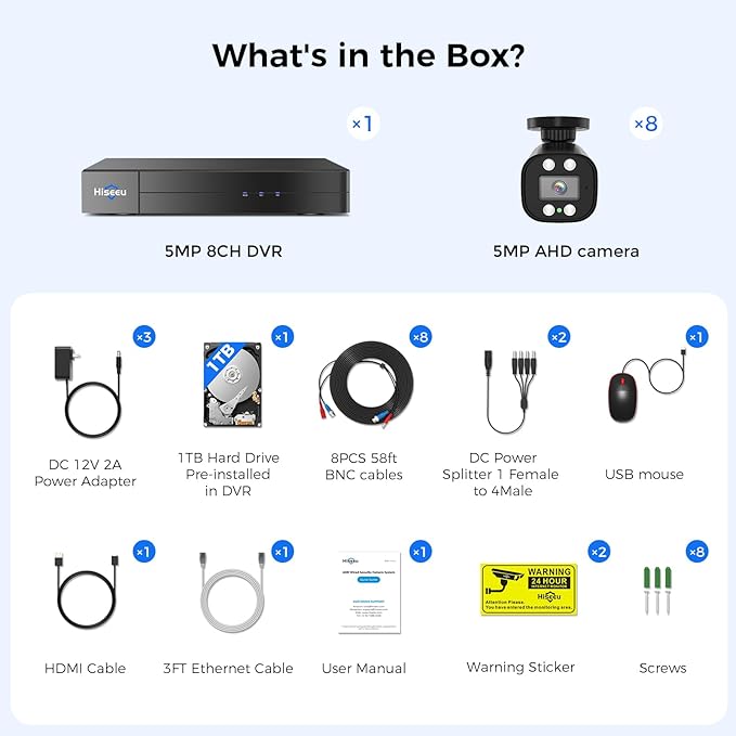 Hiseeu 3K Wired Outdoor Security Camera System with Audio,Smart Dual Light,5MP 8CH Surveillance DVR,8X5MP CCTV Cameras & 1TB Hard Drive,AI Human/Vehicle Detection,Smart Playback for Home Security