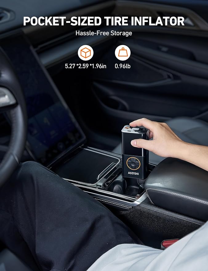 - 2X FASTER INFLATION & COMPACT: Weighing less than 1 pound, this portable tire inflator is easy to carry and store in any limited space, such as cars, bike racks, or backpacks. The compressor’s 150 PSI maximum pressure, coupled with its 17L/min airflow delivers 2X faster inflation. It can refill a 195/65R15 tire from 30 to 36 PSI in 1.5 minutes.