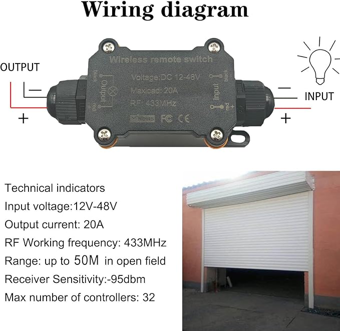- Remote control distance:The remote control adopts RF technology, stable signal. Signal of the wireless remote switch can pass through walls, floors and doors, steadily control receiver from any place within a reliable distance, Max range is up to 50 (164FT)meters with no obstacle.
