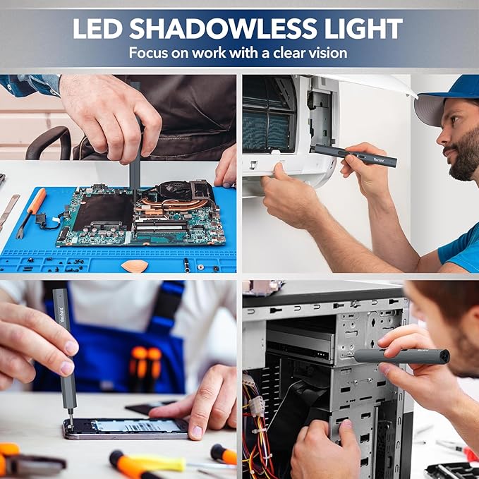 - 155 IN 1 SCREWDRIVER SET: YesRight Precision Screwdriver Set includes 2 screwdrivers: 1 electric screwdriver to make your repair work easier and more efficient; 1 manual precision screwdriver for projects that require more torque, meeting your different work needs. 140 precision bits for most electronics, This screwdriver set electric is a must-have for IT technicians, PC builders, and professional fixers