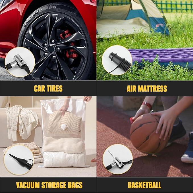 - Recommended Uses For Product : Inflating / Defiating For Sports Ball,Air Mattresses,Swim Toys,Storage Bags, Etc., Tire Inflation
