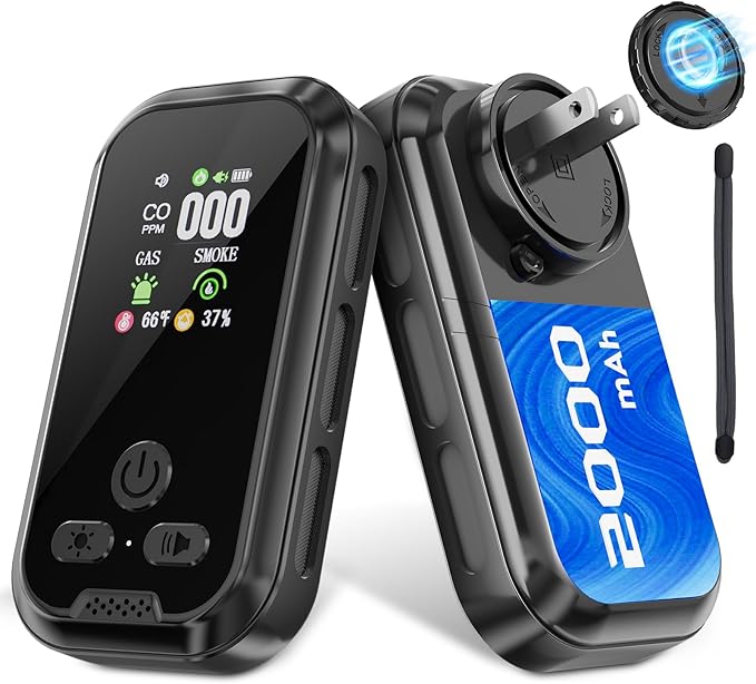 - Plug-in or Portable: Our plug in carbon monoxide detector features both plug-in and battery-powered options, offering flexibility for any space. The built-in rechargeable battery ensures that the smoke & carbon monoxide alarms continue working during power outages