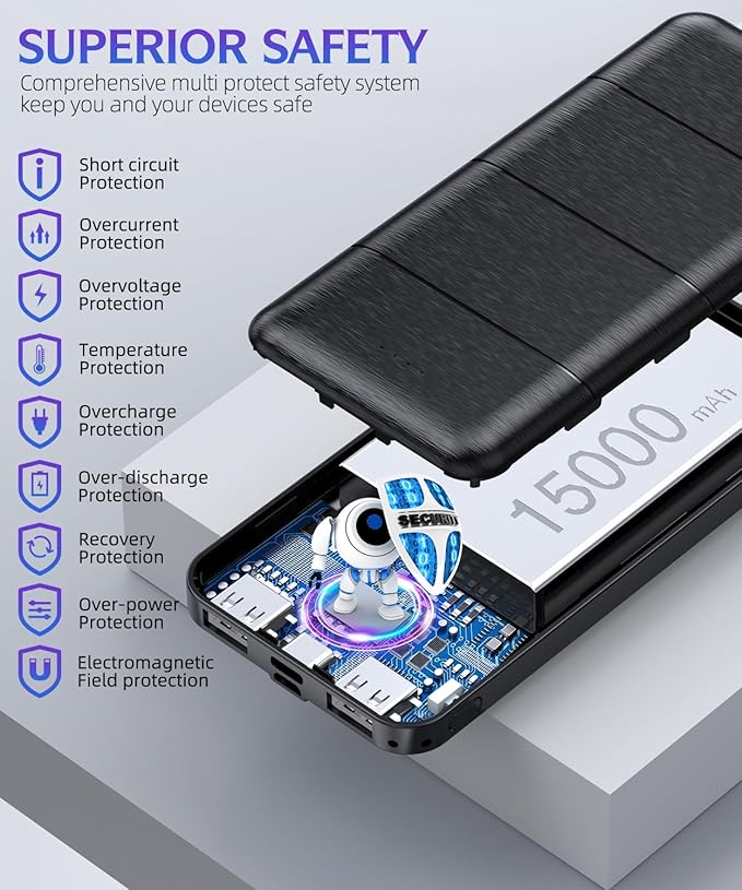 - Portable charger has an impressive 15000mAh ultra-high capacity, can provide you with an excellent battery life experience. No more worrying about your phone running out of juice during outdoor activities like hiking. Enjoy a worry-free and wonderful trip with this reliable companion.