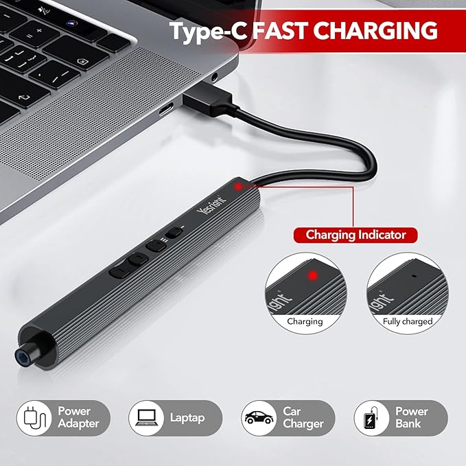 - 650MAH CAPACITY BATTERY: The Mini Electric Screwdriver has a built-in 650mAh large-capacity lithium battery for long-lasting battery life, can drive over 500 screws. Universal Type-C charging interface makes charging convenient for the precision electric screwdriver. Intuitively placed power indicator at the bottom keeps you always informed