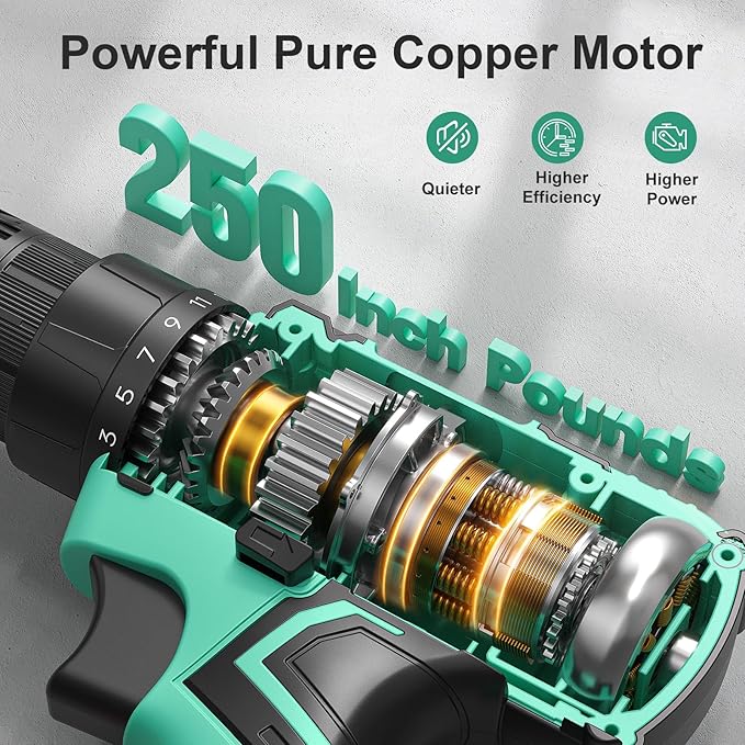 - Electric Power Drill: Compared to most 12V drills, the VIWKO 12V cordless drill has a more powerful torque of 250 inches pounds; Equipped with 25+1 torque setting, it can achieve more precise control. Variable speed trigger can cope with more usage scenarios.