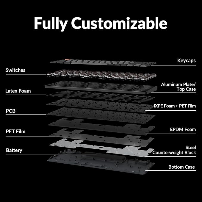 - Hot-Swappable: Equipped with Keychron's low-profile switches, 33% thinner than standard ones, this ultra-slim mechanical keyboard lets you effortlessly swap switches without soldering, offering a seamless way to customize your typing experience.
