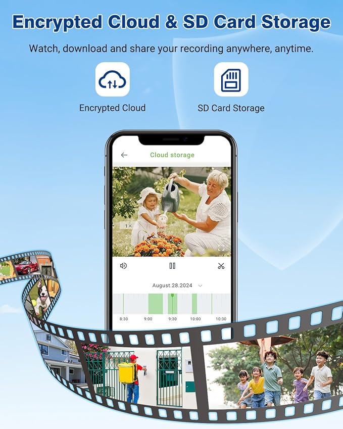 - 【Easy Setup & Dual Storage Options】 With a reliable and stable 2.4Ghz WiFi connection (5G not supported), you can enjoy uninterrupted video streaming and remote access to your camera from anywhere at any time. Choose between two storage options for event recordings, ensuring your data is always safe and easily accessible.