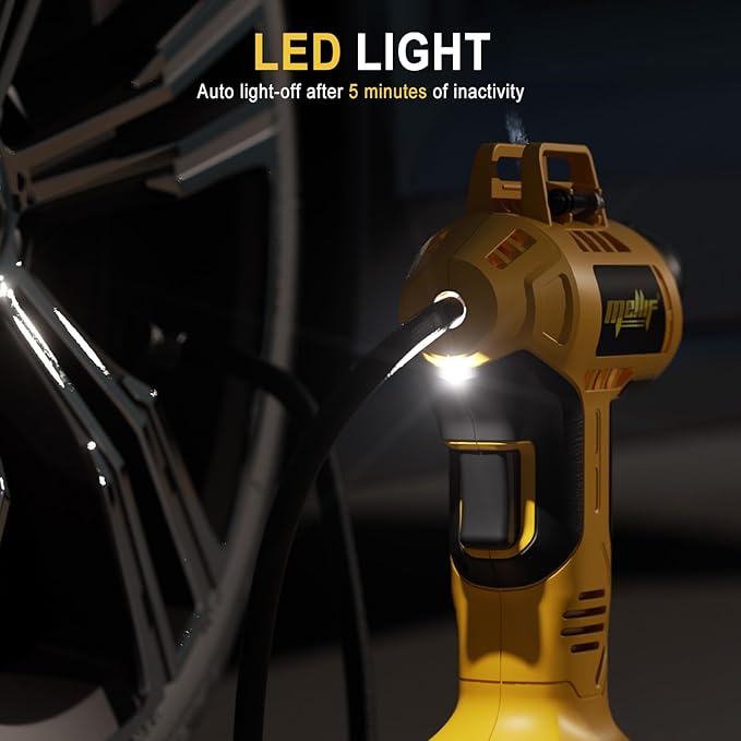 - Tool Only: Compatible with Dewalt 20V max lithium batteries and Mellif 20v batteries. Please note: This product includes the air compressor only — battery & charger are sold separately