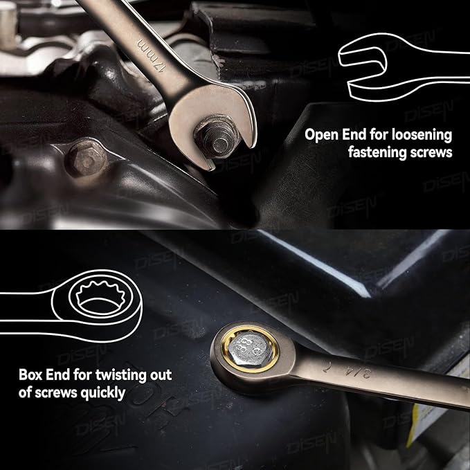 - DUAL-ENDED DESIGN FOR FLEXIBILITY AND EFFICIENCY:Each wrench features an open end for quick adjustments and a ratcheting box end for fast removal of screws without the need for frequent repositioning. This dual design enhances operational efficiency, allowing for smoother and faster work processes.