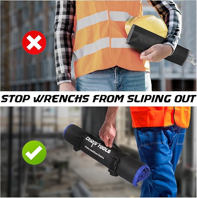 - PORTABLE STORAGE POUCH FOR CONVENIENCE:The set comes with a durable storage pouch for easy organization and portability. This tool roll ensures that your wrenches stay organized and secure, preventing loss or disorder. Whether you're on a job site, in the workshop, or working outdoors, carrying and storing your tools is hassle-free.