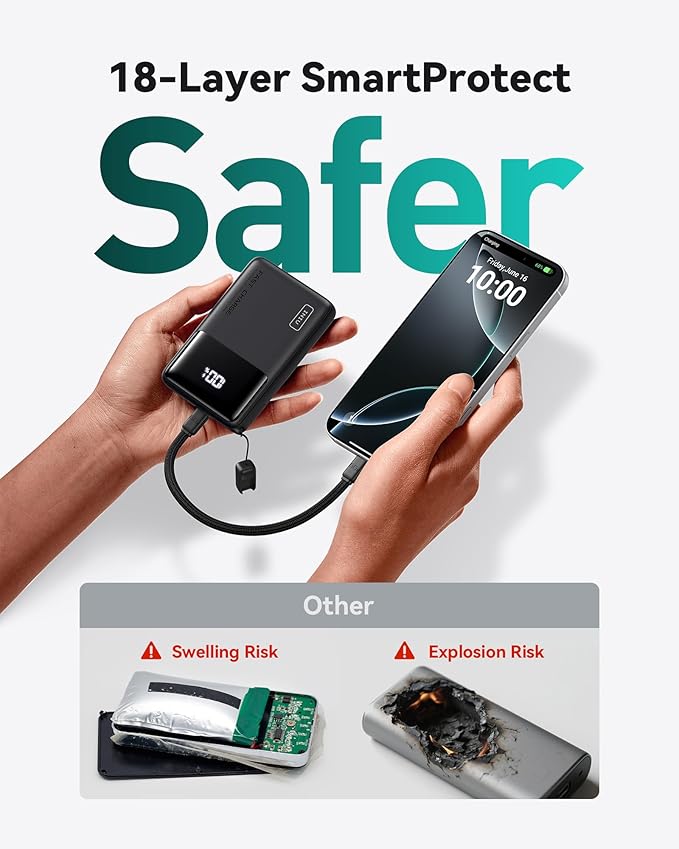 - Power for Days 10000mAh: The small but powerful 10000mAh portable charger can provide iPhone 15 with 1.5 charges, Samsung S23 with 1.5 charges, iPhone 8 with 3.3 charges, AirPods Pro Case with 11.5 charges, and iPad mini with 1.5 charges.