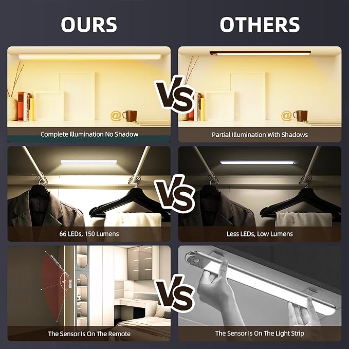 - 【Easy to Install Magnetic Lighting】These rechargeable cabinet light strips have a strong magnet built in the back, the under counter lights can be attached to any iron surface. Or utilize double sided tape and metal sheets, high quality 3M adhesive sticks firmly and securely without damaging furniture. Remove the light for illumination anytime when necessary
