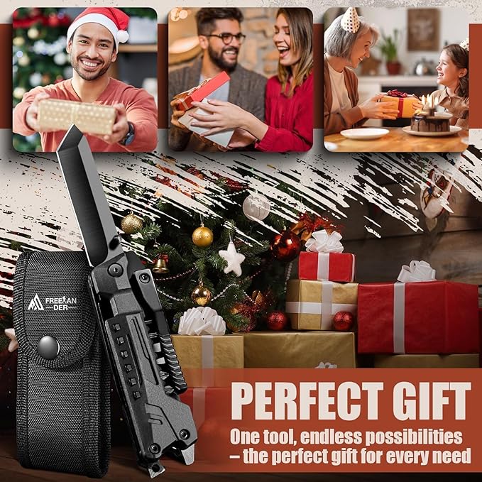 Freelander 19 in 1 Multitool Pocket Knife, Multi Tool Pocket Knife with Screwdriver, Bottle Opener, Nylon Sheath and Pocket Clip, EDC Multi-Tool Gear Gift for Men, Christmas, Birthday, and Fathers Day