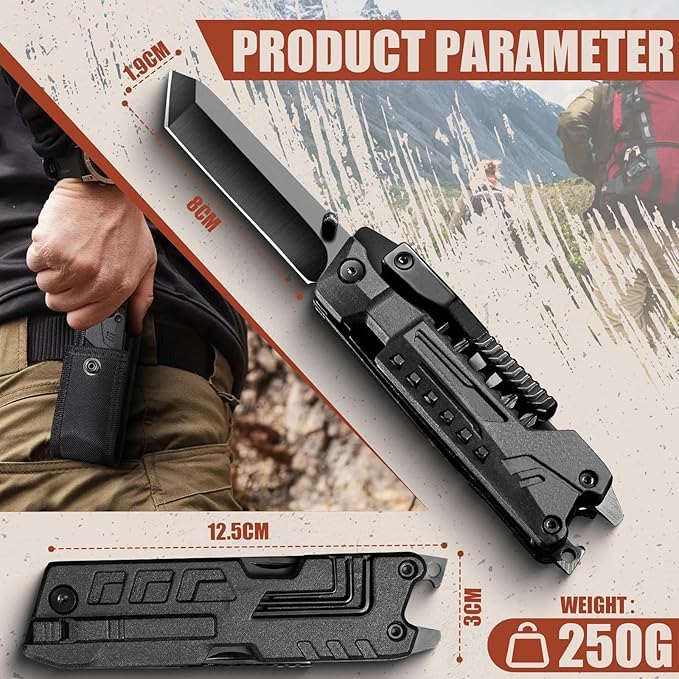 - Easy Carry with Pocket Clip - This multitool knife with a pocket clip lets you securely attach it to your belt, bag, or gear for quick and easy access. Ideal as a utility knife multitool, it’s perfect for outdoor tasks, camping, and everyday use. Keep it handy for all your repair, adventure, and survival needs