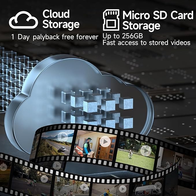- 【Secure Local & Cloud Storage Options】 Choose between SD card storage (up to 256GB, not included) or encrypted cloud storage. Enjoy free 1-day loop cloud recording to save key moments. All video is protected with AES encryption, ensuring your privacy and data security.