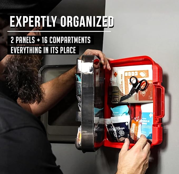 - ✅Organized, Easy-Access Compartments with Mountable Case: Features an intuitive, multi-compartment interior for quick access during emergencies. The durable hard case is mountable for easy placement in office, workstation, school classroom, restaurant kitchen, and botiquin primeros auxilios para trabajo. Case dimensions: 13" x 11.5" x 3.5", weighing 4.25 lbs.