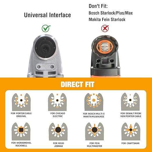 - 【Compitible with Over 98% Oscillating Tools】With a universal interface system, it is perfectly compatible with more than 98% of the oscillating tools on the market. With 3 clips adapter, Compatible with Dewalt, Bosch, Fein, Makita, Milwaukee, Ryobi and so on.