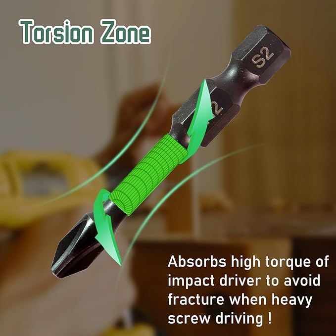 - Impact Rate Bits: Impact Shock Absorbent Zone stands up to impact drivers. It can be handled a new generation of higher torque impact drivers.
