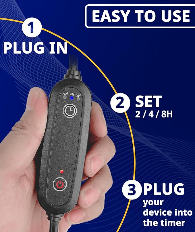 - 【3 Timing Modes】 Push button sets the hours for 2, 4, 8H or Hold.