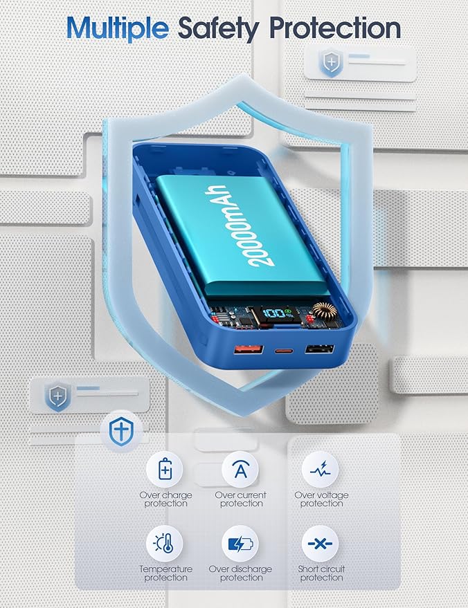 - Fast Charging Power Bank: This Portable phone charger has two USB-A and 1 USB C ports.The USB-A2 port of this portable power bank delivers up to 22.5W of ultra-fast charging, significantly boosting charging efficiency and reducing wait times. The suitable travel companion for your smart devices.