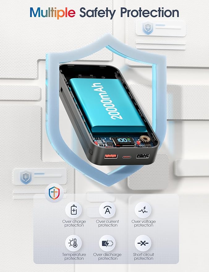 - Fast Charging Power Bank: This Portable phone charger has two USB-A and 1 USB C ports.The USB-A2 port of this portable power bank delivers up to 22.5W of ultra-fast charging, significantly boosting charging efficiency and reducing wait times. The suitable travel companion for your smart devices.