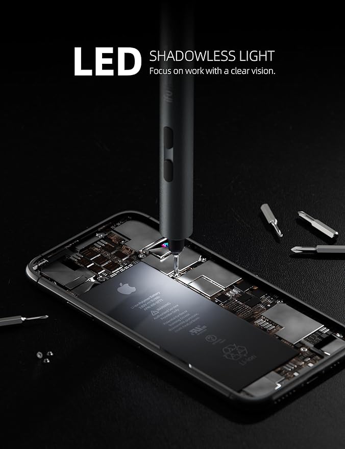 - Electric Screwdriver with Flexible Dual Mode Operation:Switch between manual and electric modes to suit your needs. Manual mode provides up to 3 N.m torque for more control, while electric mode delivers 0.2 N.m torque for delicate tasks. Ideal for repairing smartphones, laptops, cameras, watches, and other electronics, ensuring precision and screw protection.