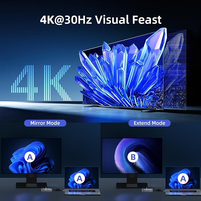 - 4K HDMI to USB-C Hub: The USB C Hub mirrors or extends the screen via the HDMI port on the USB C hub to stream 4K 3840 x 2160 @30Hz video directly to a monitor, projector, or HDTV, offering a cinema-like immersive experience, great for education, recreation, work, fitness and more.Please note that the C port of the Host device needs to support video output