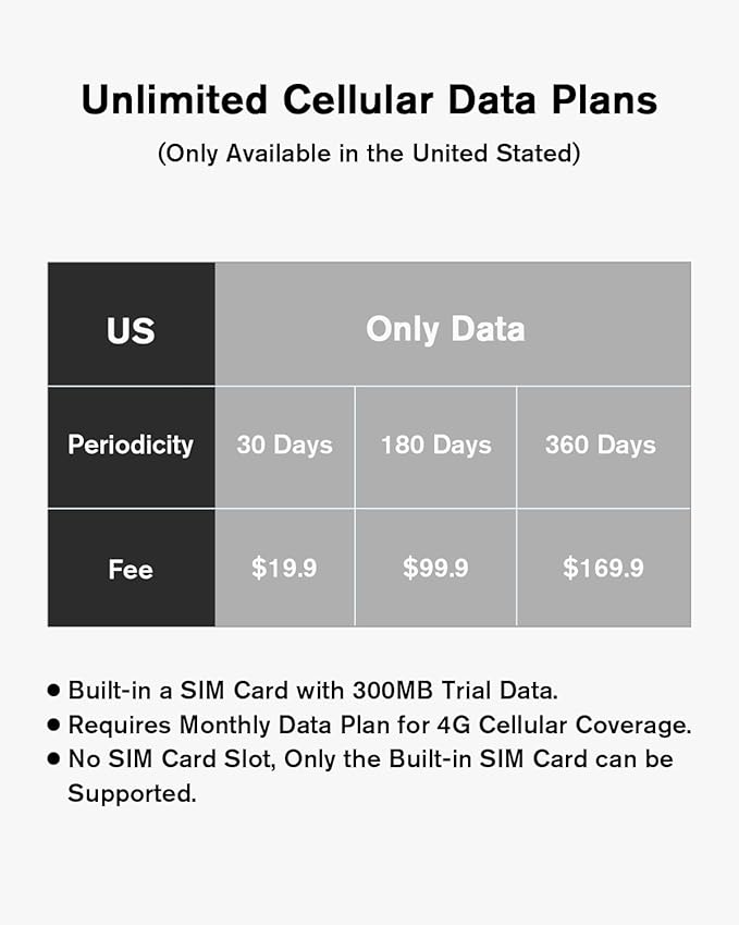 - Recommended Uses For Product : No SIM Card Slot, Only Support the Build-in SIM Card, Outdoor Security, Requires Monthly Data Plan for 4G Cellular Coverage No SIM Card Slot, Only Support the Build-in SIM Card, Outdoor Security, Requires Monthly Data Plan for 4G Cellular Coverage